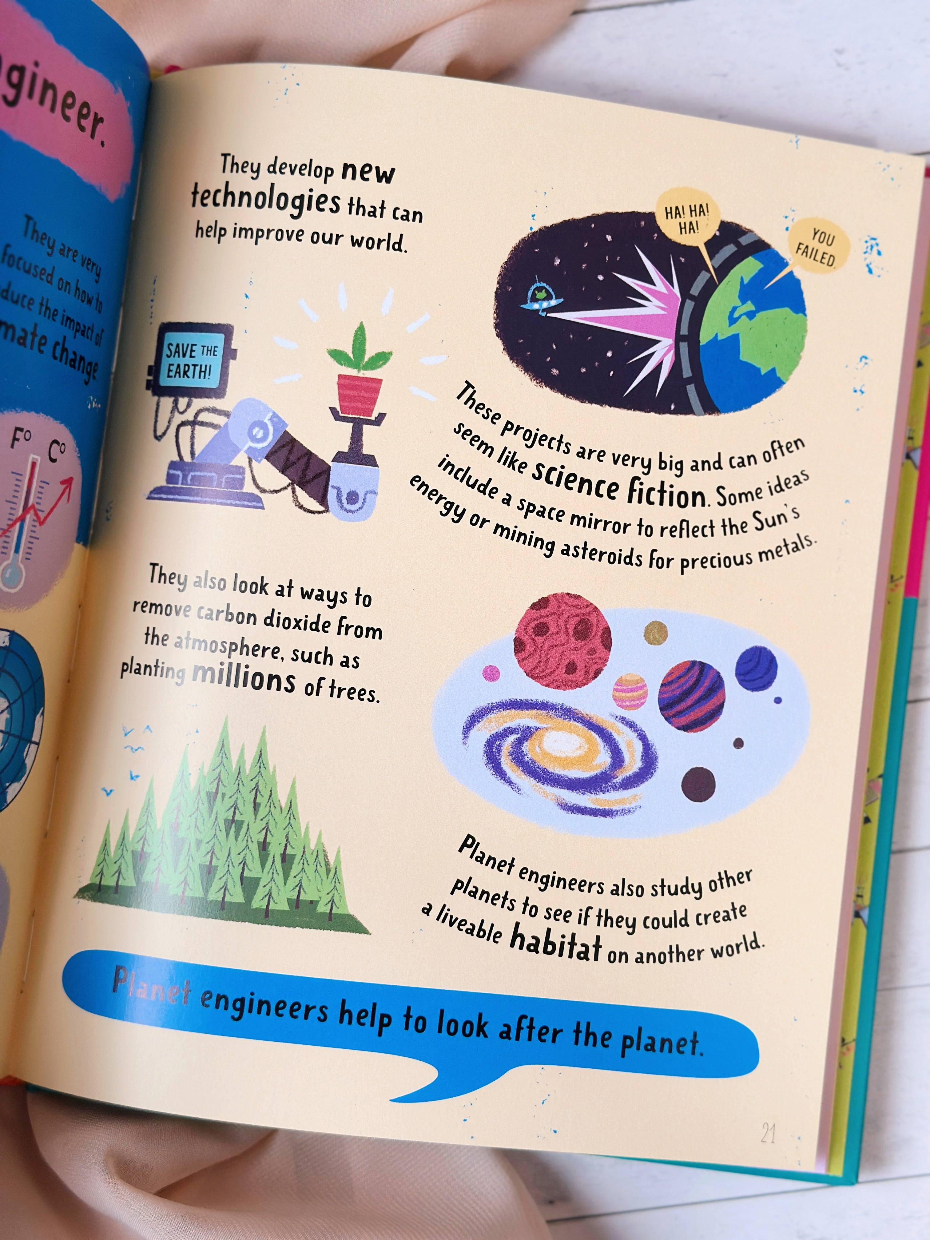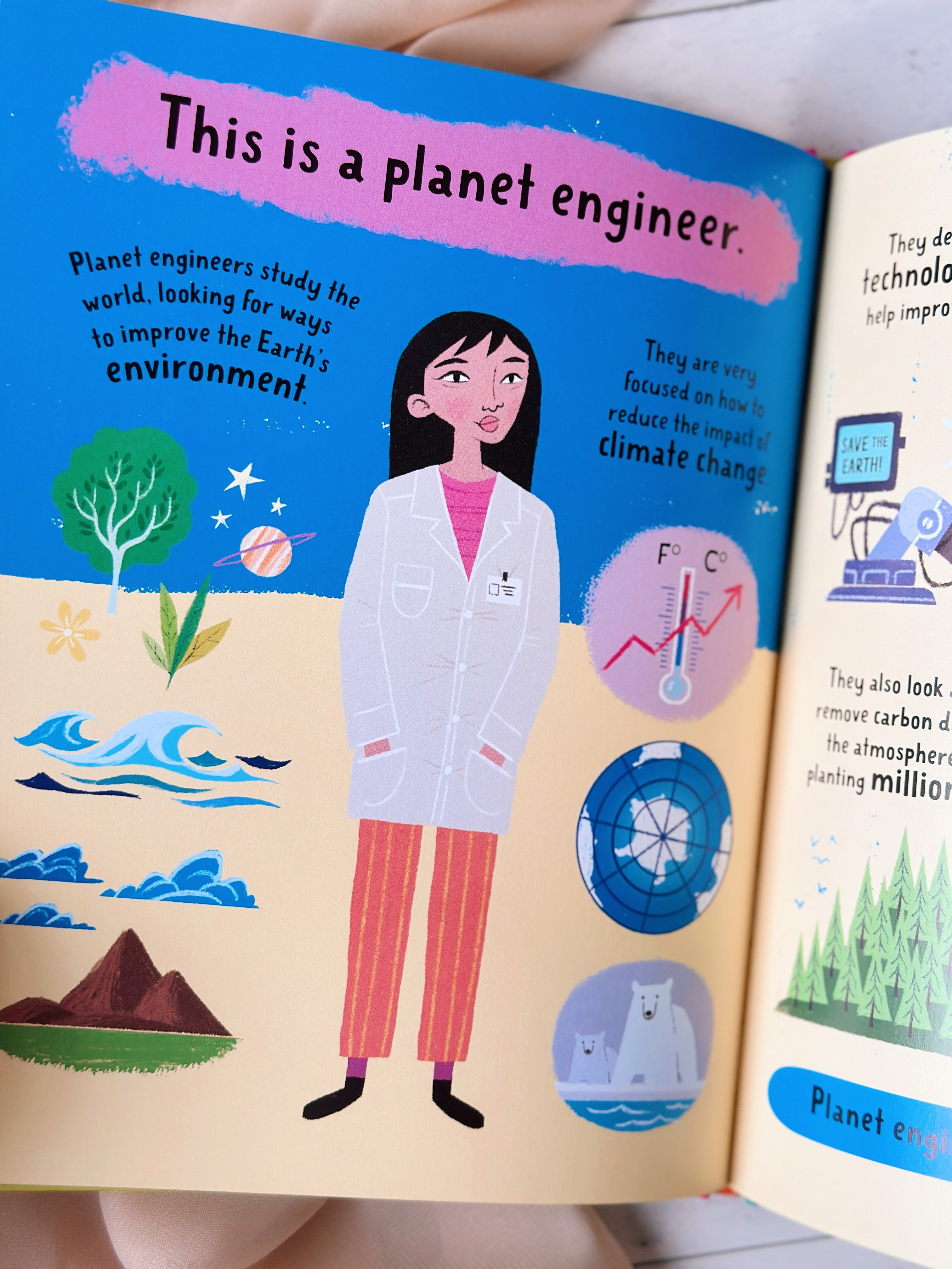 Using simple language to explain different jobs, this charming book demonstrates to young children how different careers can help look after the planet. It includes roles such as zookeeper, food scientist and planet engineer as well as forester, conservationist and journalist.