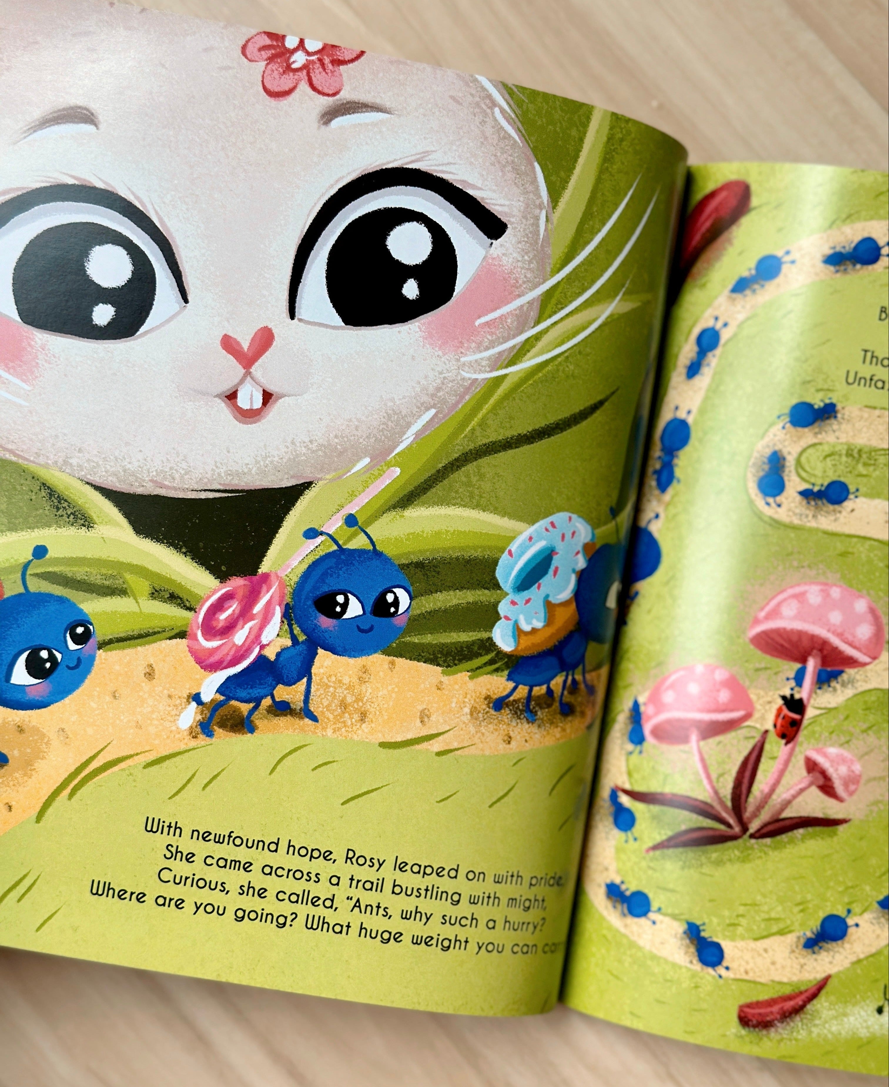 Rosy Posy is a brave rabbit on a magical adventure. Join her as she learns essential life lessons from the garden's enchanting creatures—a wise tree, diligent ants, a musical grasshopper, a resilient spider, and a grumpy dung beetle. She discovers the importance of courage, teamwork, resilience, and embracing her fears and the unknown. Guided by a magical dandelion, Rosy learns that life's meaning lies in savouring simplicity, finding joy in small things, and spreading love.